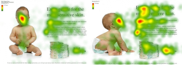 사람의 얼굴 이미지를 사용하여 주의를 끌고 감정을 이끌어 냅니다. 우리는 얼굴을 먼저 보도록 연결되어 있습니다. 얼굴의 감정이 상대방에게 전달됩니다. 그리고 우리는 그들이 응시하는 방향을 찾을 것입니다.