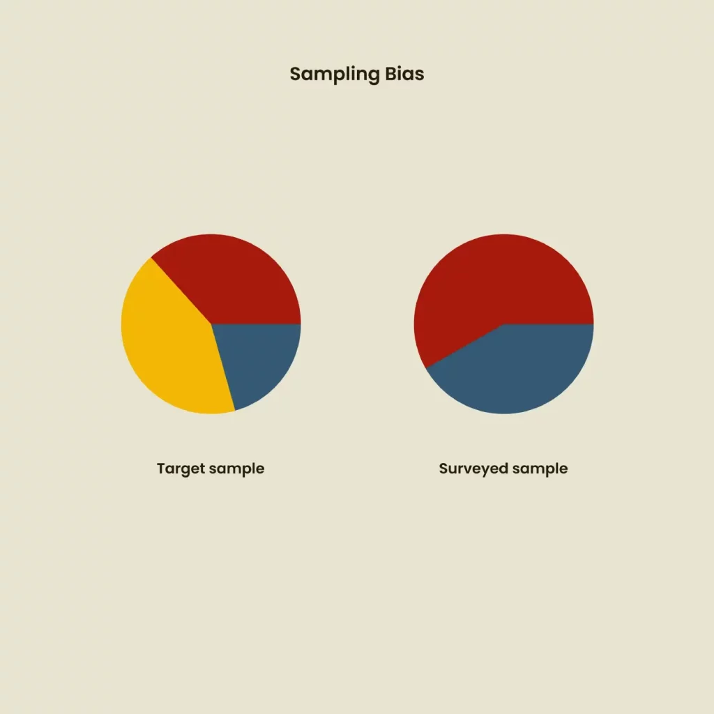샘플링 편향은 대상 모집단의 구성원이 올바르게 선택되지 않은 경우에 발생합니다. 예를 들어 음식 과민증이 있는 사람들이 식사를 기록하고 성인 남성(20~30세), 성인 여성(20~30세), 10대 남녀(15~19세)를 찾는 데 도움이 되는 앱을 설계하고 있습니다. ) 대상 샘플로 식품 과민증이 있는 사람. 그러나 모든 샘플 대상이 성인 남성과 10대 여성만 있는 경우 편향되고 대표성이 없는 샘플이 생성됩니다.