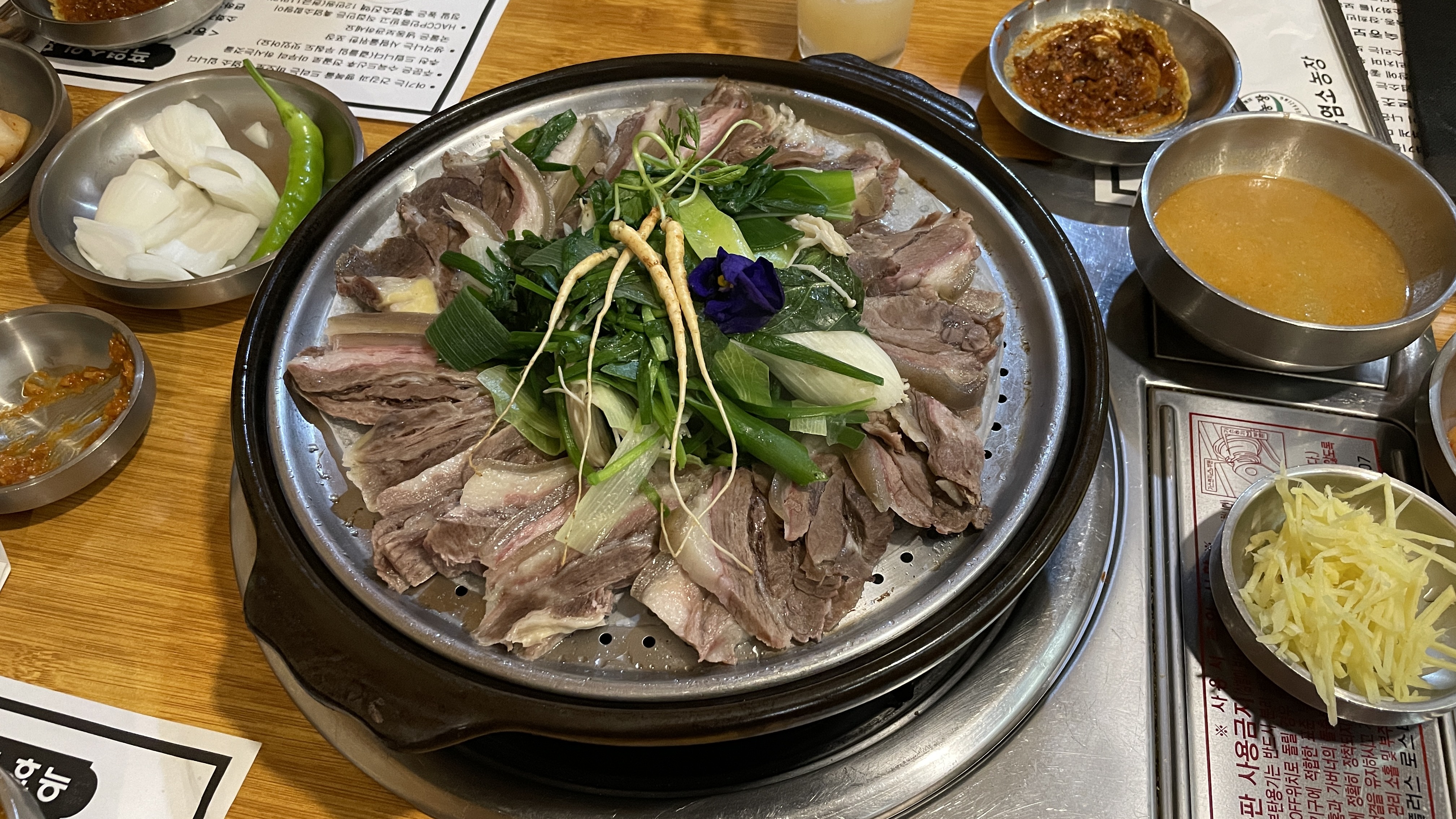 함께한 팀원들과 음식을 선택하고 기다리며, 미리 주문한 소맥을 한 잔씩 돌리고, 이런저런 얘기들로 서로에게 위로와 칭찬을 아끼지 않으며 그동안의 고생을 소맥 한 잔으로 날려 버리며 재미있는 시간들을 보냈습니다. 오랜 기다림의 끝에는 기대 반 우려반이라는 말이 있습니다. 처음 접하는 음식의 인식이 잘못 기억되면 다음에는 절대로 먹지 않는 것이 본래 인간이지 않겠습니까. 음식 세팅이 되고 처음 마주하게 된 흑염소 고기는 다른 고기들과 사뭇 다르지 않았습니다. 비주얼은 다른 고기들과 같은 수육과 전골, 그리고 무침까지 모두 입가에 옅은 미소와 함께 군침이 흐를 정도로 좋았습니다. 그리고 맛있는 음식이 차려졌으니 다시 건배를 위해 잔에 술을 가득 채우고 또 한 잔을 비웁니다. 그리고 수육 한 점을 소스에 듬북 찍어서 한 입에 넣습니다. 그리고 처음 접하는 흑염소 고기의 식감과 맛을 느껴 봅니다. 흑염소 고기는 참으로 맛이 있더군요. 부드러운 육질의 고기와 야채들과 함께 곁들여져 있어서 조합이 좋았습니다. 흑염소 갈비 수육과 전골, 그리고 무침을 먹었는데, 맛이 모두 일품이었습니다.