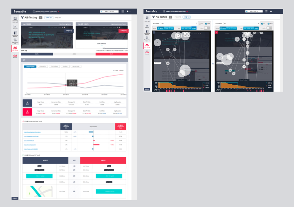 예시 : 뷰저블에서는 페이지 별 방문자수, 전환 버튼 클릭수 등 KPI를 측정하고 검증할 수 있습니다.