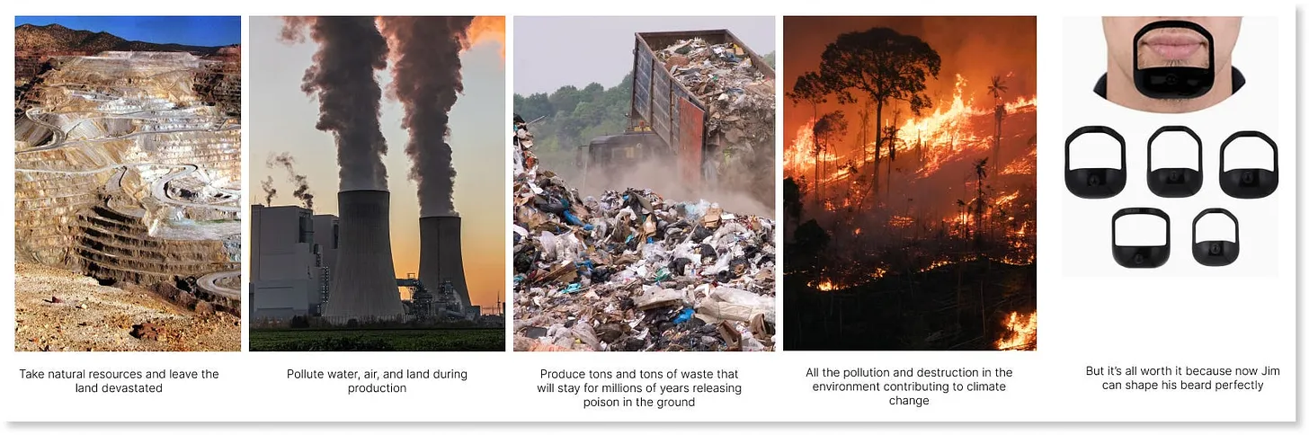 우리가 더 많이 소비할수록 우리는 이미 파괴적인 환경 상황에 더 많이 기여하게 됩니다. 결과적으로 우리가 불필요하고 과도한 소비를 조장할수록 우리는 이미 파괴적인 환경 상황에 더 많은 기여를 하게 됩니다.
