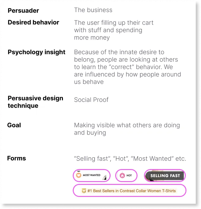 설득력 있는 디자인은 심리학과 행동 통찰력을 사용하여 사용자의 행동과 결정에 영향을 미칩니다. 목표는 설득자가 원하는 행동을 이끌어내는 것입니다. 예는 다음과 같습니다.