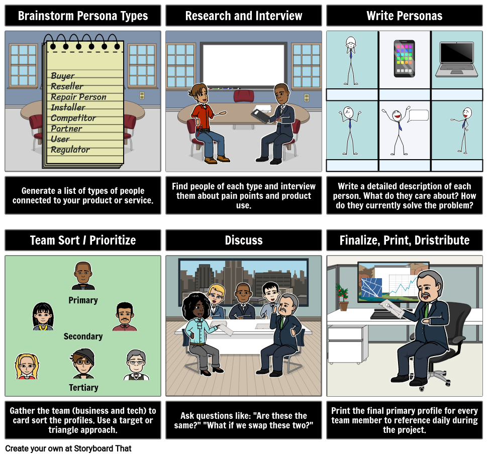 그렇다고 해서 모든 스토리 각 페르소나마다 크게 다를 필요는 없으며, 오히려 여러 페르소나를 통해 전달되는 고유한 요소에 공통 스레드가 산재되어 있을 수 있습니다. 흥미롭고 통찰력 있는 스토리 속에 페르소나를 캐스팅하면 제품과 관련된 잠재적 행동 패턴을 파악할 수 있습니다. 각 페르소나를 중심으로 이러한 내러티브를 만드는 것은 처음에는 정교한 작업처럼 보일 수 있지만, 그만한 가치가 있다고 말하고 싶습니다. 명확한 스토리라인을 통해 다양한 잠재 고객과 효과적이고 설득력 있게 소통할 수 있으며, 이를 통해 다음과 같은 분야에서 더 강력한 비즈니스 관계를 구축할 수 있습니다. 마케팅의 본질은 결국 훌륭한 스토리를 전달하는 데 있다는 믿음을 다시금 되새기게 됩니다! 그리고 세심하게 제작된 구매자 페르소나보다 더 좋은 주인공이 있을지는 않을 것 같습니다.
