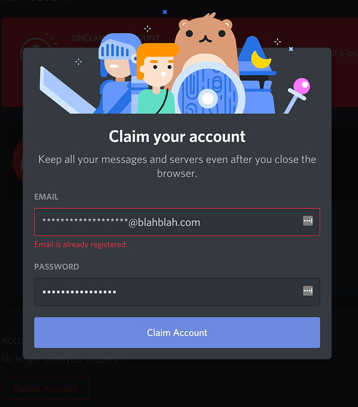 내가 본 가장 흥미로운 디자인 패턴 중 하나는 Discord의 '요청되지 않은 계정' 기능으로, '계정 생성' 마찰의 첫 번째 단계를 제거하는 훌륭한 방법입니다. 또한 이것은 사용자가 이미 제품을 사용해 보았기 때문에 등록 작업을 완료하려는 사용자의 동기를 증가시킵니다.