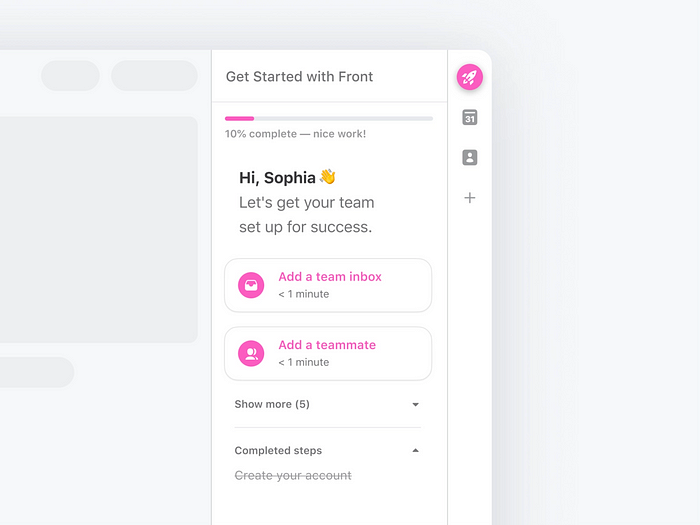 또한 많은 수의 작은 작업을 작은 작업 그룹처럼 느껴지도록(예: 청킹) 창의력을 발휘할 수 있습니다. 예를 들어 온보딩의 일부로 10개의 입력(예: 이름, 이메일, 프로필 기본 설정 등)을 수집해야 한다고 가정해 보겠습니다. 미리 10개 입력을 모두 요청하는 대신 이메일(로그인 사용자 이름의 두 배)과 비밀번호를 요청해야 합니다. 그런 다음 '온보딩 체크리스트'의 일부로 다른 몇 가지 입력을 표시한 다음 점진적 공개를 사용하여 상황에 맞는 나머지 입력을 도입할 수 있습니다.