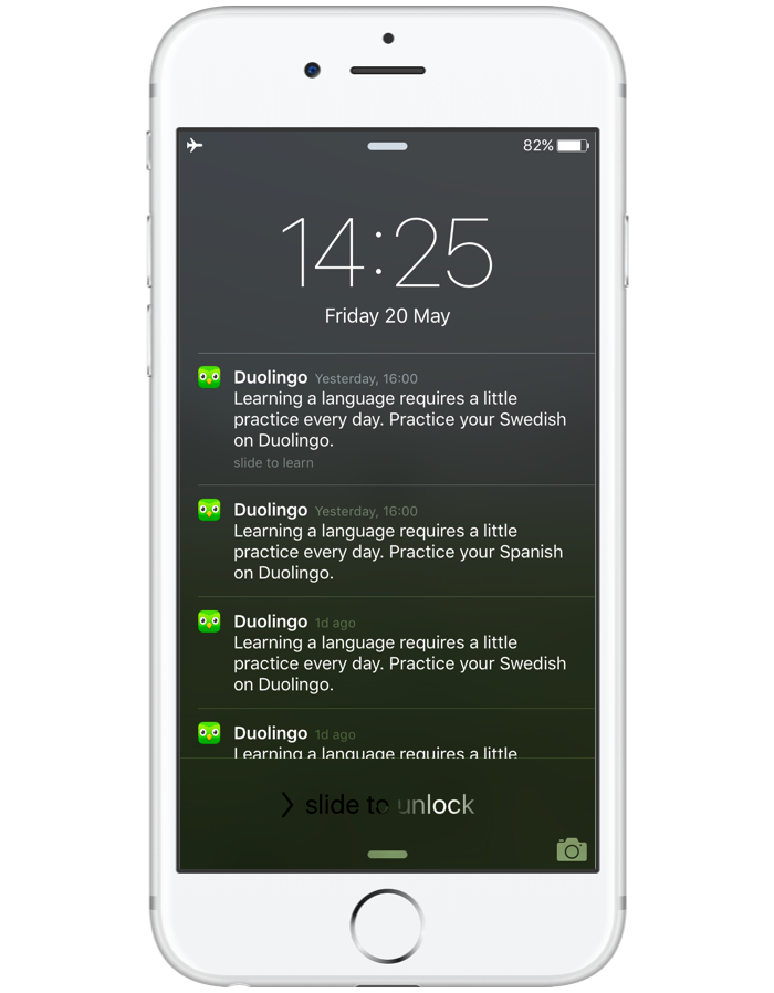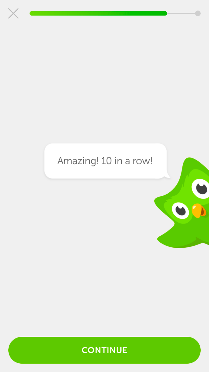 듀오링고가 온보딩 중에 이 정보를 수집하고 나중에 시스템이 사용자의 동기가 낮다는 것을 감지하면(예: 비활동 기간) 사용자 여정에서 Ovsiankina 효과를 활용하여 보다 대상이 지정된 메시지로 푸시 알림을 개선할 수 있습니다. "오늘 5개의 새로운 스페인어 단어를 배우세요"라는 일반적인 알림 대신 사용자에게 스페인어 학습의 초기 목표를 상기시킬 수 있습니다.