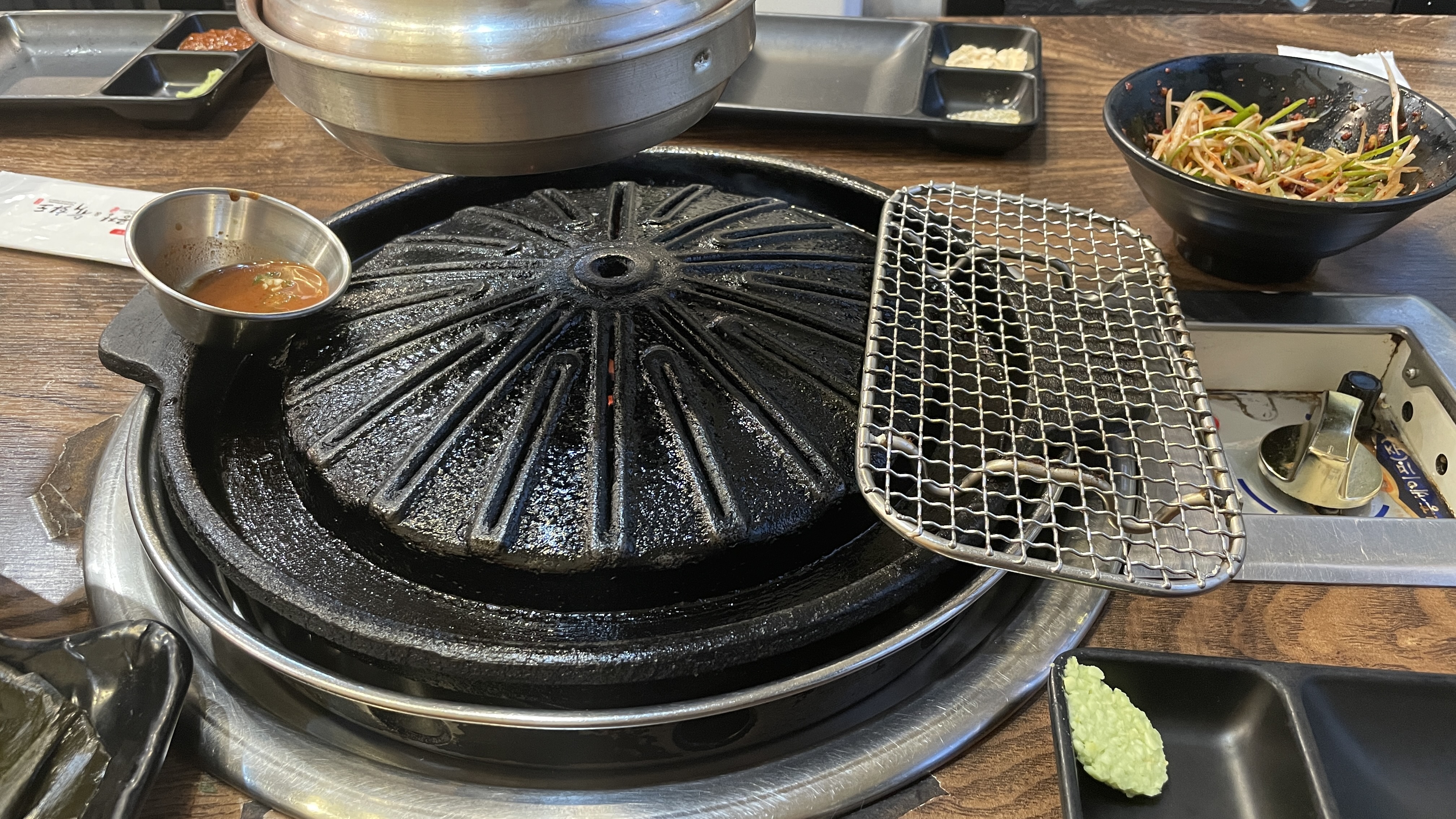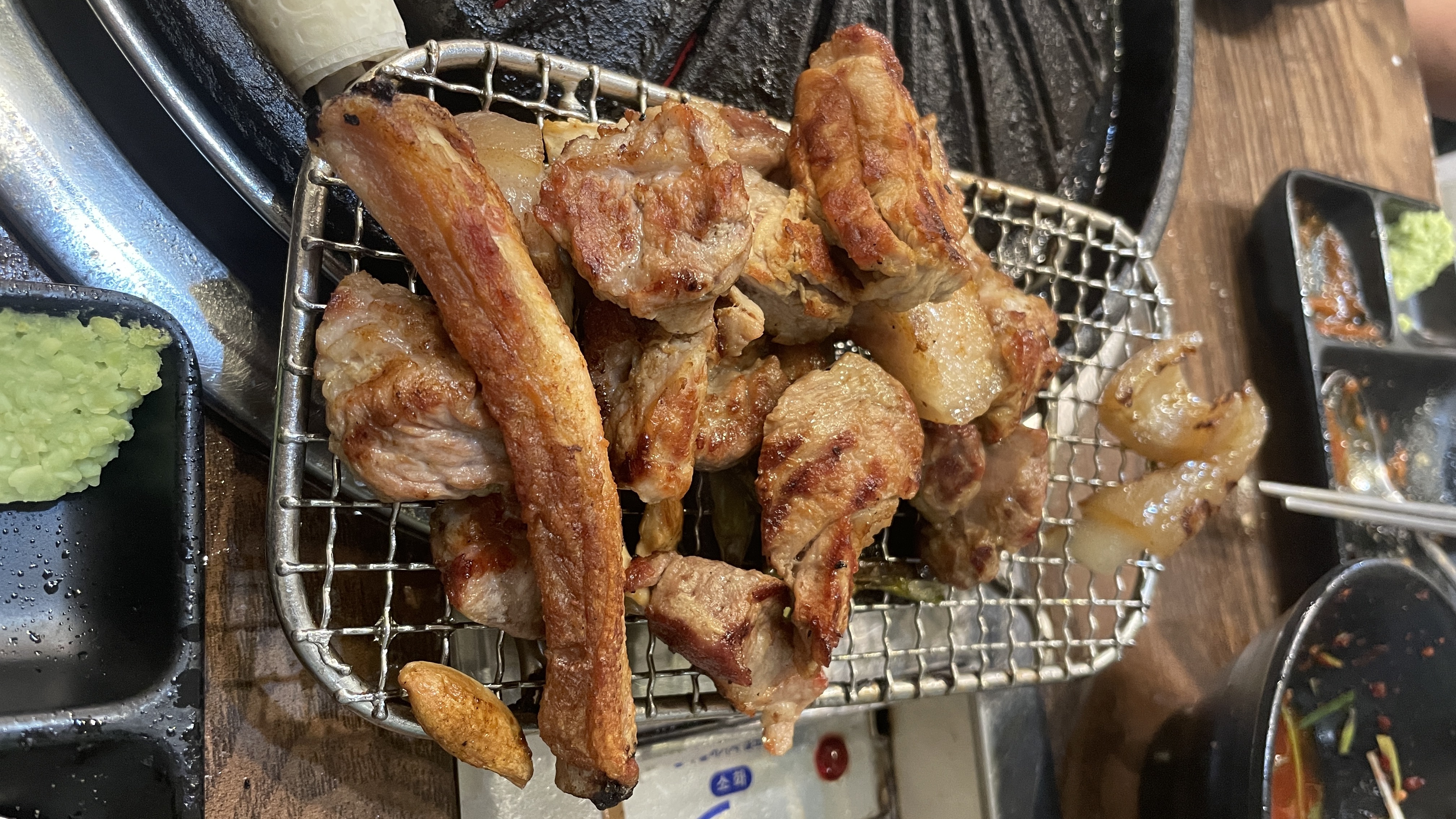 사진 중에서 빈 불판이 보이는데, 제가 조금 일찍 도착해서 늦게 도착하는 개발자들에게 천천히 빨리 오라고 압박을 하기 위해 불판을 미리 올려놓고 달구고 있는 사진을 개발자들에게 문자를 돌린 이미지입니다. 오늘따라 많이 늦는 모양입니다. 서로 다른 회사를 다니는 개발자들인데, 어찌 모두 늦는 것인지... 아무튼 그렇게 불판을 올려놓고 한 참을 기다린 다음에야 고기를 올려놓고 익기를 기다려 봅니다. 창 밖으로 바쁘게 지나가는 사람들이 혼자 앉아 있는 나를 쳐다보며 지나갑니다. 쑥스러운 마음에 술 한잔을 들이켭니다. 그렇게 시간이 흘러서야 한 사람씩 도착합니다.