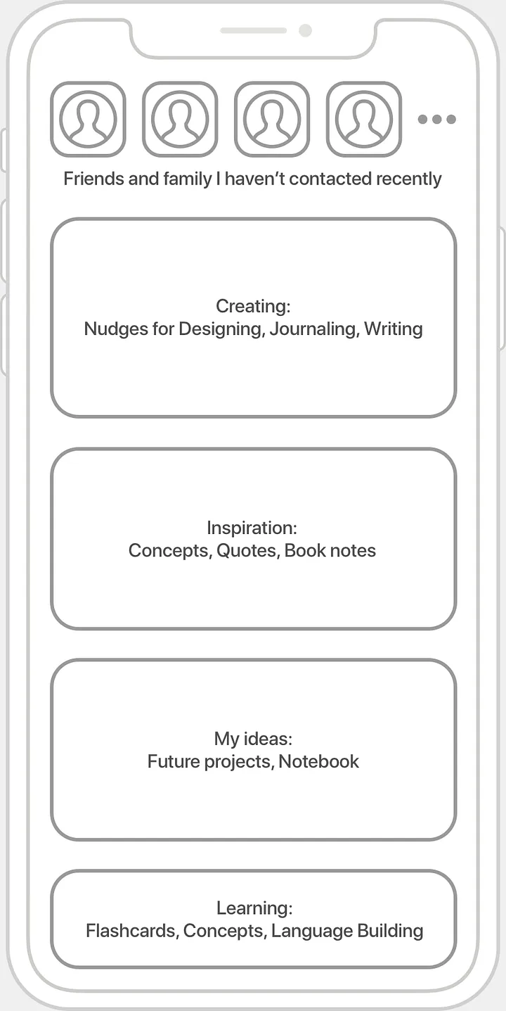 우리는 모두 주머니에 슈퍼컴퓨터를 가지고 다닙니다. 왜 우리는 그것들을 활용하여 그 원리들 중 일부를 우리의 일상생활에 통합하지 않을까요? 우연에 기반한 모바일 운영 체제를 만드는 것은 매우 흥미로울 수 있습니다. 좋은 디자인 결정은 우리가 있는 곳, 바로 가까이에 두는 것입니다. 모바일 기기 화면에, 우리가 휴대전화를 잠금 해제할 때마다 볼 수 있습니다. 우리는 애플리케이션을 완전히 없애고, 모든 행동을 개인적인 가치와 의도에 기반할 수 있으며, 파멸적인 스크롤링이 아닙니다.
