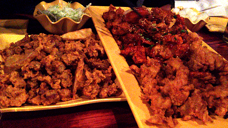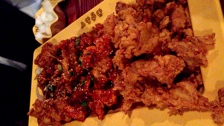 역시 숙대입구라서 그런지, 모든 테이블에는 여성들로 가득가득했고, 그리고 상당히 시끄러웠습니다. 처음 먹어보는 거라서 맛이 먼저 궁금해서 사방의 테이블을 둘러 보았습니다. 치킨집에서 파는 맛이 어땧는지 궁금했는데, 여느 치킨집과는 많이 다르더군요.