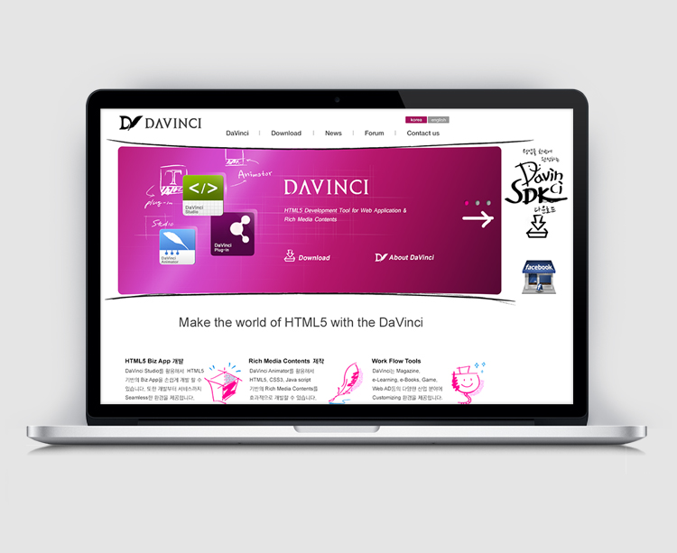 모바일 웹페이지 저작 도구 DaVinci의 홍보용 홈페이지 제작.