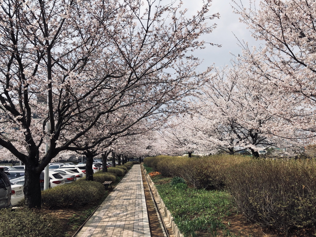 아시아나항공에는 유난히 벚꽃나무가 많더군요. 주차장 둘레길을 따라가면 이어지는 벚꽃나무가 펼쳐져 있어서 마음까지 편해지는 느낌입니다.