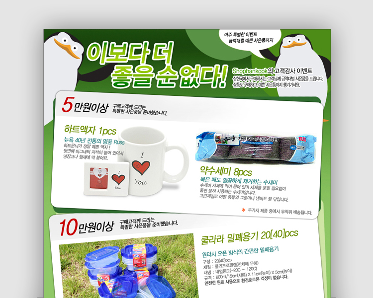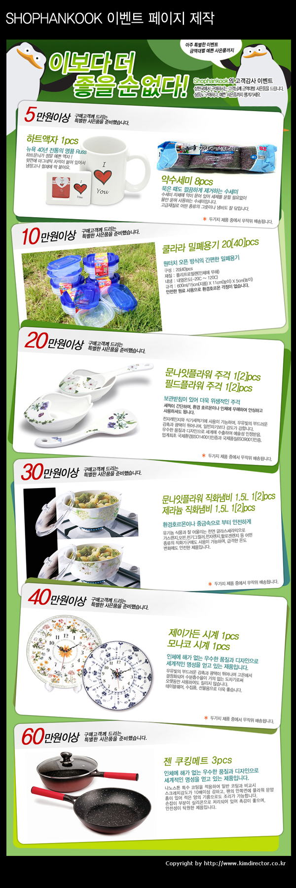 구매 고객께 사은품을 드릴 수 있는 안내 페이지 및 사은품 정보페이지 제작.