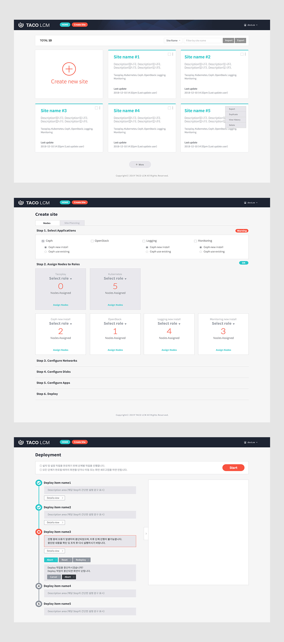 클라우드를 셋팅하려면 다양한 환경을 셋팅할 수 있어야 하기 때문에 단순하지 않고 복잡한 환경구조를 직관적인 UI 환경과 인터페이스의 편의성을 고려하여 진행되었고, 기존의 시스템 환경에 있어서 딱딱함과 단조로움을 버리고, UI 환경에 사용성과 편의성을 기대할 수 있도록 했다.