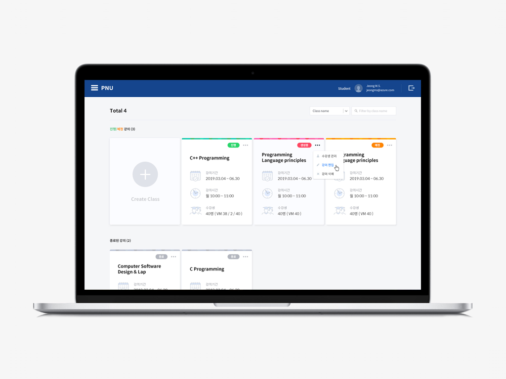 온라인으로 강의을 생성하고 생성한 강의에 VM을 설치하여 강의를 진행할 수 있는 솔루션 개발 프로젝트 진행. 강의 관리 및 VM 관리, 학생 및 강사관리를 할 수 있도록 개발. Prototype 형식의 초기 개발 프로젝트.