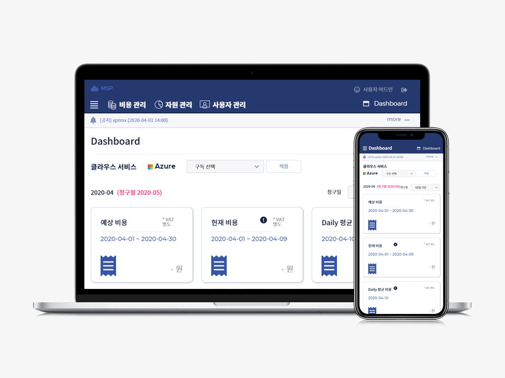 클라우드 운영관리 포탈 개발 구축 프로젝트. 기존 운영사이트 고도화 개념의 기능 추가 및 모바일 대응을 위한 프로젝트. 클라우드 운영관리 및 과금정산, 클라우드 자원관리를 위한 운영 포탈. 관리자와 사용자 별도 관리체계 구축.