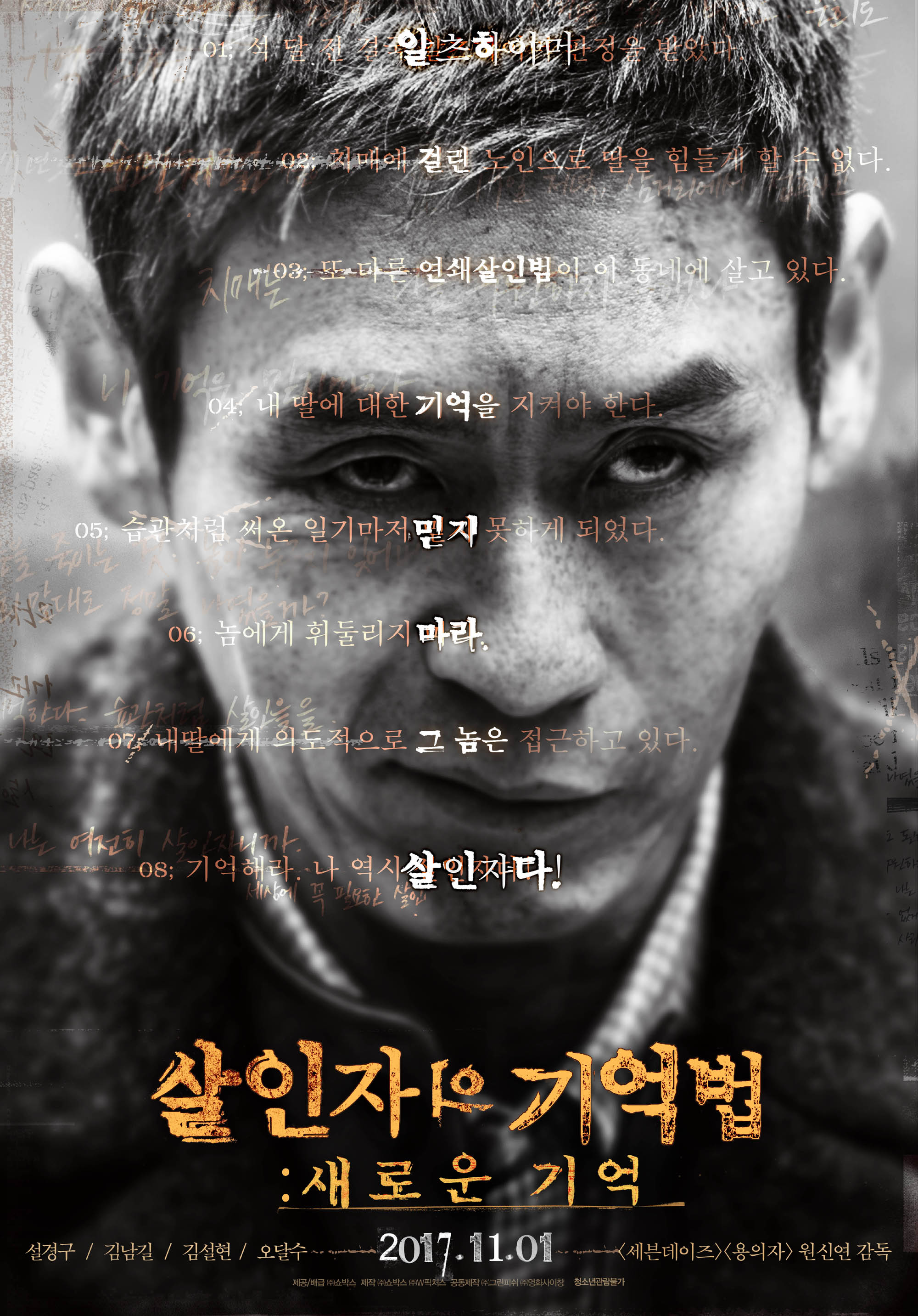 김영하 작가의 베스트셀러를 영화화 한다는 점, 알츠하이머에 걸린 연쇄살인범의 이야기라는 점만 들어도 상상력을 자극하기에는 부족함이 없는 소재인 것과 설경구와 김남길의 조합에서 느껴지는 궁금증이 더해져서 완성된 영화를 보지 않고는 이 영화를 논하지 않았으면 한다. 한마디로 기대 이상의 영화인 것이다.