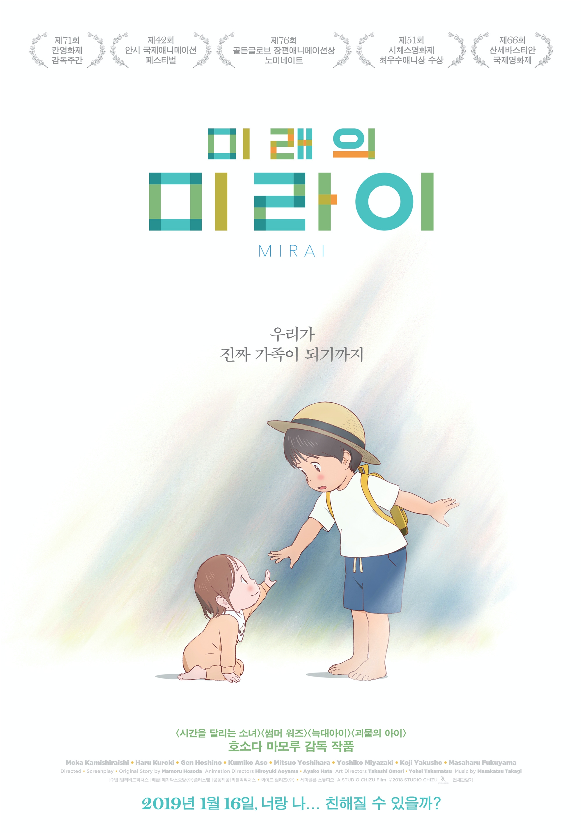 개인적으로 좋아하는 감독 호소다 마모루의 작품을 오랜만에 보게 되는 것 같다. 아마 "괴물의 아이" 이후인 것으로 기억된다. "괴물의 아이"가 2015년에 나왔으니 근 4년만인가? 암튼 호소다 마모루가 가지고 있는 상상력이 이번 작품에서도 잘 드러난 것 같은 생각이 든다. 이야기의 소재가 독특한 부분들이 많이 드러나는 작품들이 많은데, 대부분 연출한 작품들이 모두 그런 것 같다. "시간을 달리는 소녀", "썸머워즈", "늑대아이", "괴물의 아이" 까지 모든 작품이 색다르면서 극히 평범하지 않은 소재를 사용하여 연출한 작품들이라고 생각한다. 이번에 소개할 작품인 "미래의 미라이" 도 그런 상상력이 연출로 이어진게 아닌가 생각된다.