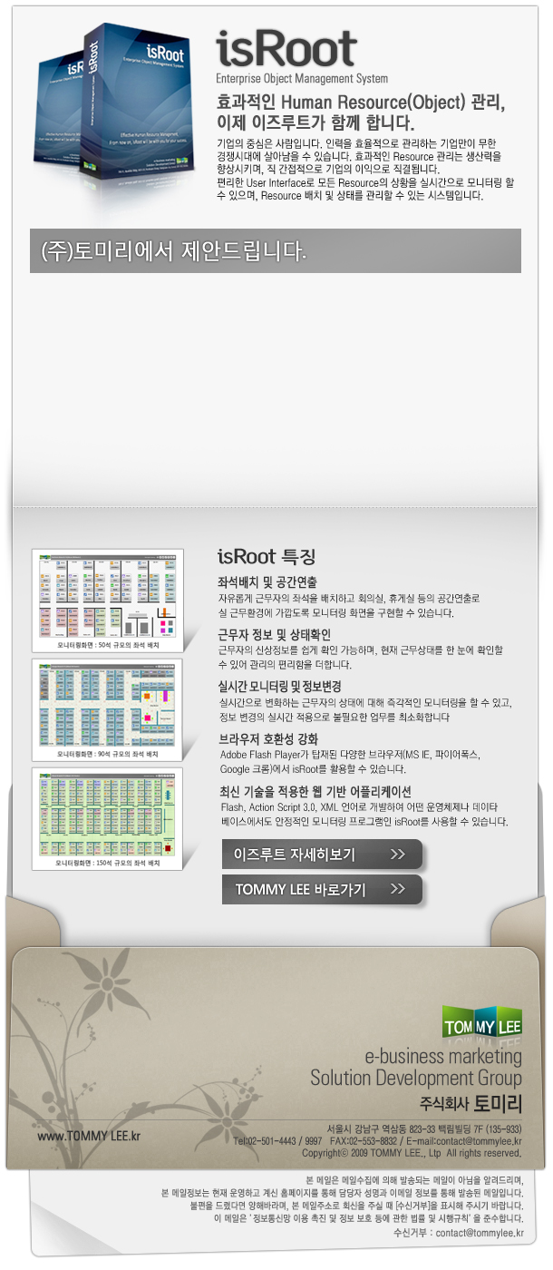 좌석 배치 솔루션 "isRoot"를 홍보, 마케팅용으로 활용한 이메일 발송폼 디자인제작