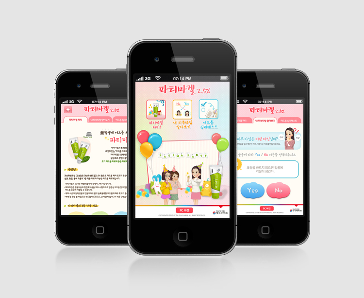 태극제약의 파티마겔 여드름 치료제의 브랜드 홈페이지 개발 작업.