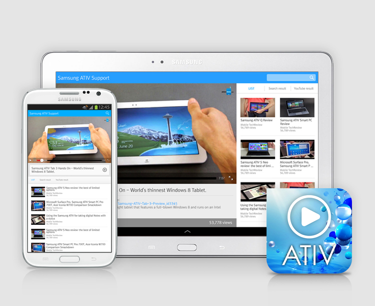 삼성전자 ATIV의 온라인 동영상으로 제공되는 다양한 정보를 전달하기 위해 개발된 안드로이드 앱.
