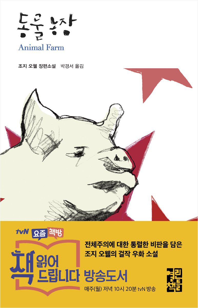<동물농장>은 우리나라에서도 많이 번역되어 출간한 책 중에 하나이다. 또한, 최근에는 한 방송사 프로그램에서 소개한 책으로도 알려져 있다. 열린책들의 <동물농장>을 선택한 이유는 북커버가 한 몫했다고 해도 과언이 아니다. 북커버는 아주 심플하게도 돼지 한마리의 머리가 스케치한듯한 모습으로 그려져 있기 떄문이다. 뭔가 웃기지도 않은 모습에 돼지 주제에 무표정한 표정에서 진지함이 보이는 것이 나만 그렇게 느껴지는 것일까? 연필로 대충 그린 듯한 돼지의 표정이 뭔가 완성되지 않은 듯한 우리 사회에 대한 완성되지 못한 모습을 표현하지 않았나 생각한다. 나중에 알게된 사실이지만 북커버 디자이너로 유명한 김민정 디자이너의 손에서 만들어졌다고 하니, 책의 내용과 너무 잘 어울리는 듯한 인상이 새삼 다르게 느껴졌다.
