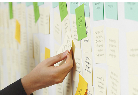 점점 포스트잇에 의존하면서 자신의 머리는 안 쓰게 되는 것이다. 내비게이션에 의존해 운전하다 보면 아무리 반복해도 길이 기억나지 않는 것과 같다. 포스트잇은 보조 도구일 뿐이다. 같은 크기와 색깔의 포스트잇에 적힌 아이디어들이 다 같은 무게를 갖는 것은 아니며, 유사한 내용이 많다고 더 중요한 것도 아니다. 그 중요성과 디테일은 그것을 적은 사람의 머릿속에 있기 때문에, 포스트잇에 적으며 머리의 부담을 더는 순간 그 디테일은 사라져 버린다. 결국 남은 것은 기계적인 분류 뿐이다.