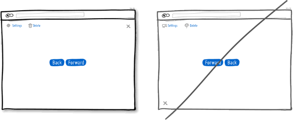 버튼 좌우등 당연시 하는 인터페이스를 채용하여 사용자 실수를 예방합니다. 반대로 바라지 않는 행동은 굳이 일반적인 UI와 반대로도 활용도를 낮출 수 있습니다.