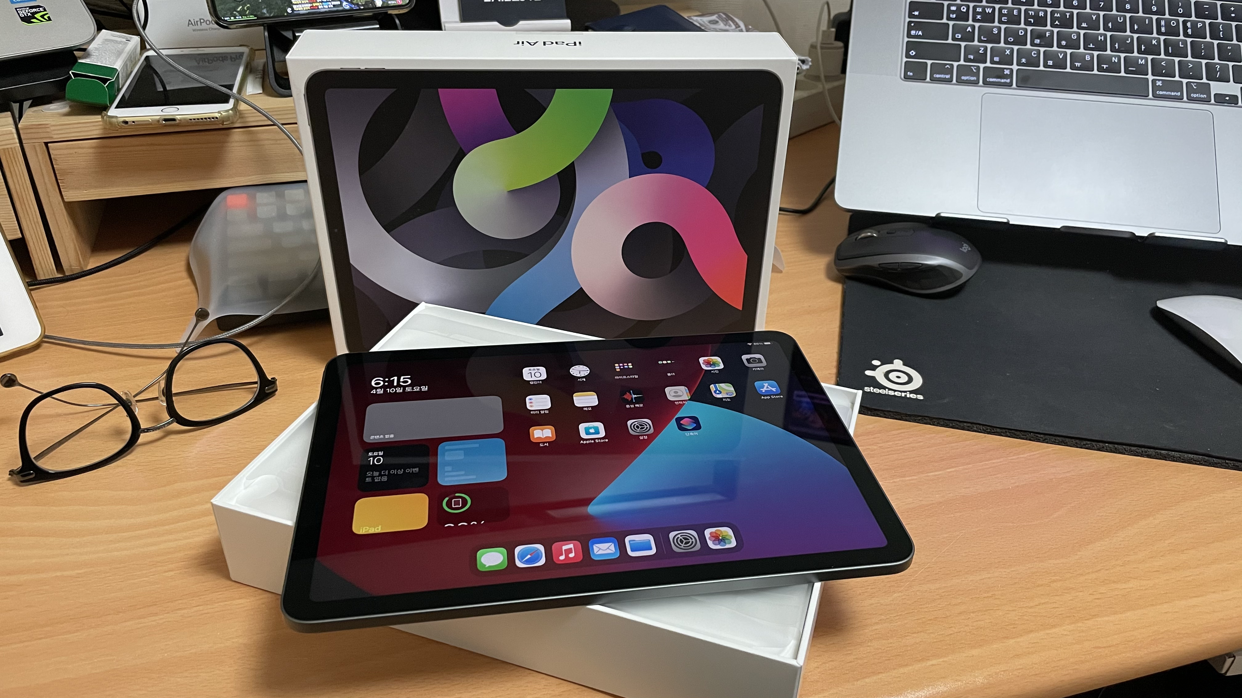 일단 업무적으로 회의가 잦은 편인데, 회의 떄마다 작업 중인 노트북을 들고 다니는 불편함이 있었다. 전원 케이블, HDMI 케이블, 외장하드 등의 여러 가지 장치들이 있다 보니 회의 때마다 케이블을 분리하고 다시 연결하는 과정이 인근 불편하고 귀찮았다. 두 번째는 노트북보다 휴대성에 강점이 있는 아이패드라서 좋다. 물론 최근에는 가벼운 노트북들이 많이 출시하고 있기는 하지만, 아이패드만의 매력이 있는 것도 무시할 수 없는 조건 중에 하나임에는 틀림없다. 그리고, 세 번째로 노트북만큼의 가성비를 보이고 있다는 것이다. 예전의 아이패드는 솔직이 얘기해서 작업의 효율성이 높은 것은 아니었다 생각한다. 물론 운영체제인 iOS가 아이패드 전용으로 분리되면서 그 효율성이 더욱 높아졌다고 생각된다. 그런 면에서 아이패드가 가지고 있는 장점이 더욱 많아졌다고 얘기할 수 있을 듯하다. 그리고 프로를 정말 많이 고민을 했지만, 고성능 작업을 하거나 난이도를 요하는 작업거리가 있는 것이 아니기에 충분히 고민하고 에어 4를 구입하게 됐다.