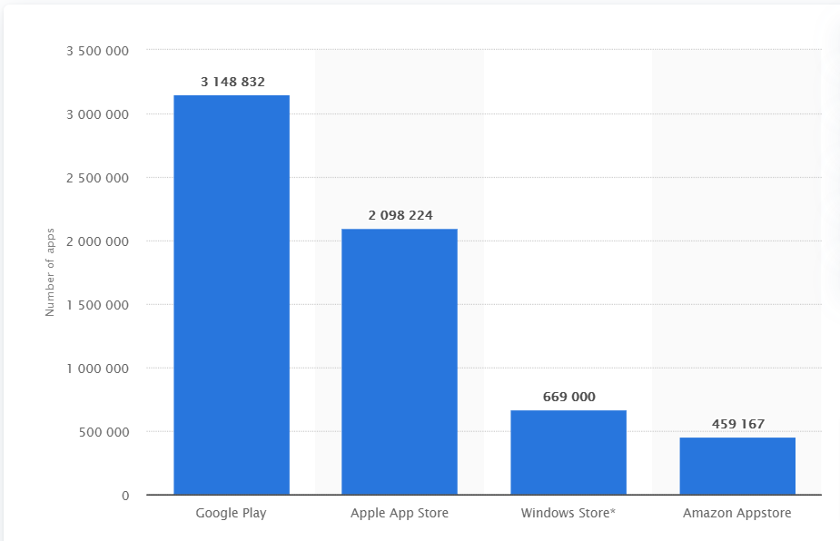 귀하의 앱은 636만 개의 앱 중 하나가 되기 위해 엄청난 경쟁에 직면해 있습니다 . Google Play에는 약 314만 개의 앱, App Store에는 209만 개의 앱, 기타 앱 스토어에는 113만 개의 앱이 있습니다. 2020년에만 2,180억 개의 앱 다운로드가 발생했습니다.