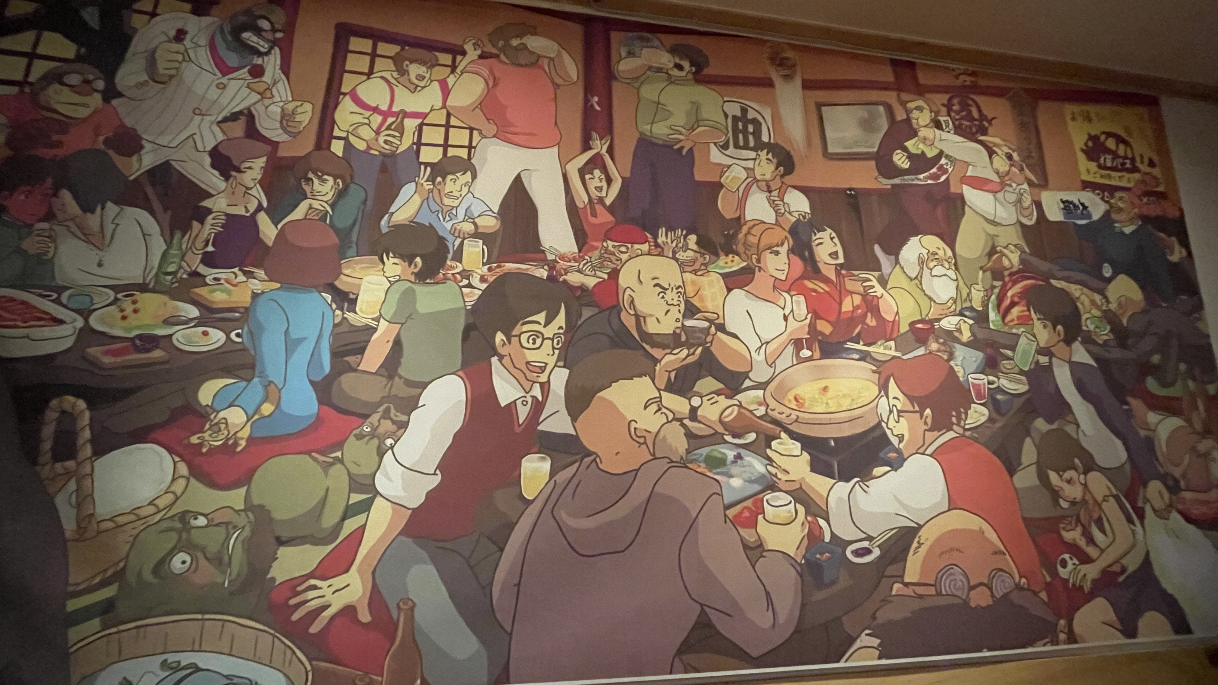 오늘은 맛집을 소개하고픈 것은 아니다. 개인적으로 맛집을 소개하는 다양한 매체들이 있는데, 굳이 나까지 해야 할 의무감은 들지 않아서 패스하겠다. "라크슌"에 갔을 때 마다 사진 속 이미지가 너무 인상적이랄까 갔을 때마다 한 참을 바라보면서 식사를 했다. 사진 속 이미지는 "라크슌" 내부 벽에 걸려 있는 이미지를 찍은 것인데, "미야자키 하야오"를 좋아라 했던 옛 시절에 대한 추억이 떠올라 돈가스 먹는 것도 잊고 한 참을 바라봤던 그림으로 지브리 스튜디오에서 연출한 대부분 주요 캐릭터는 다 있는 것 같다. 애니메이션을 본지가 너무 오래돼 나서 기억하는 캐릭터는 그리 많지 않았지만, 그래도 익숙함에 대한 기억 때문인지 친근함이 느껴져서 나도 모르게 핸드폰 카메라는 켜고 말았다.