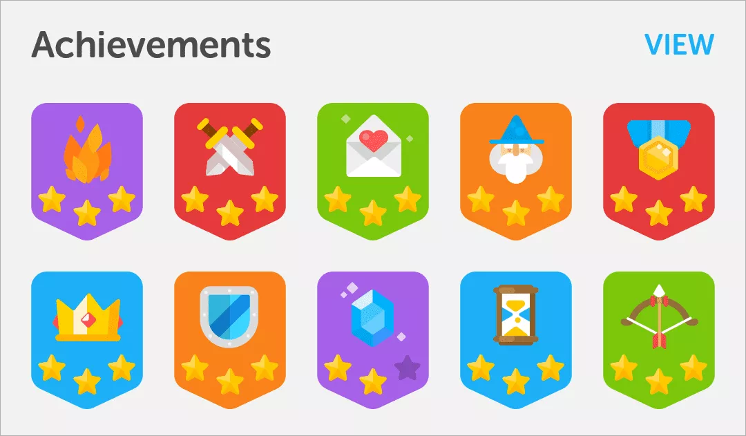 어떤 진전을 이루거나 장애물이나 도전을 극복할 때 성취감이 얼마나 큽니까? 목표에 가까워지고 달성했다는 느낌은 도전을 단계로 나누고 진행 상황(포인트, 보석, 레벨 등)을 표시하여 제공할 수 있습니다. 많은 모바일 게임이 이를 통합하지만 피트니스 앱에서도 흔히 볼 수 있습니다. (예: Fitbit) 및 Goodreads와 같은 앱에서 해당 연도의 읽기 목표 진행 상황을 추적할 수 있습니다. 배지와 순위표도 이 핵심 추진력에서 유래합니다. 대표적인 예로 듀오링고가 있습니다. 여기에서 새로운 언어를 배우면서 배지를 획득하고 순위표에 오르기 위해 싸워야 합니다!