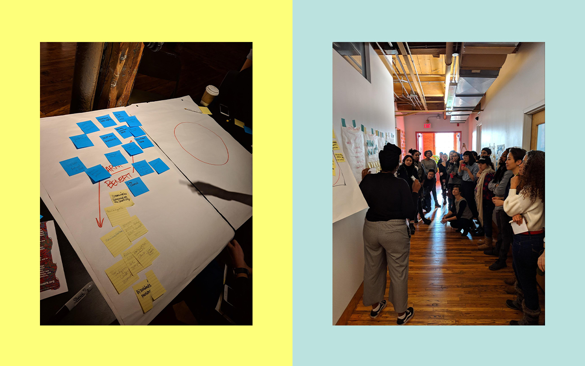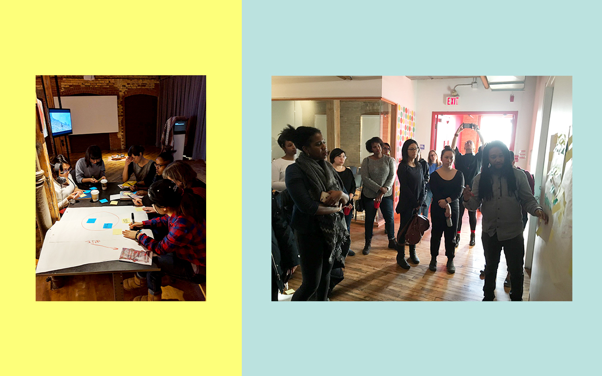 개발 계획에는 저렴한 임대 주택 건설을 지원하는 재정 도구가 포함된다고 주장했지만 Block Sidewalk 커뮤니티 기반 조직의 연합은 이 계획이 감시를 합법화하고, 도시 공간에 대한 민주적 의사 결정을 훼손하고, 노동 인구의 젠트리피케이션과 이주를 가속화하고, 주요 해안가 공간의 많은 부분을 사유화한다고 지적했습니다. 그 지식을 바탕으로 우리는 Design Justice 관점에서 도시 공간에서 합의 기술의 미래를 재구상하기 위해 실습 디자인 활동을 수행하는 워크숍을 만들기 위해 Digital Justice Lab과 협력했습니다. (Block Sidewalk의 작업 덕분에 Sidewalk Labs가 최근 토론토에서 철수했다는 점은 주목할 가치가 있습니다.)
