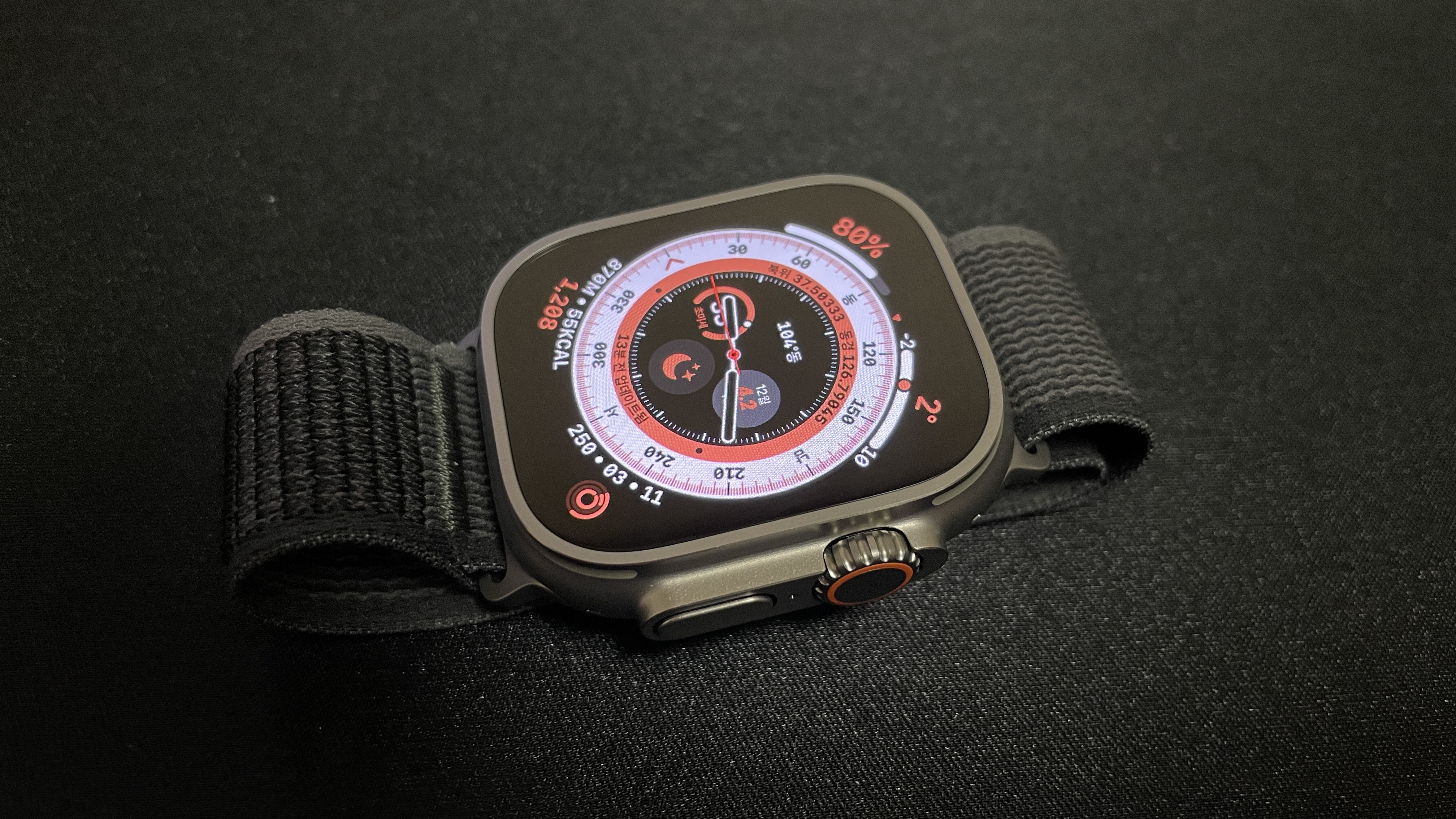 애플워치가 아무리 좋은 제품이라 해도 스트랩의 만족도도 신경 쓰이는 부분 중에 하나일 것이다. 이전까지 사용한 애플워치4의 경우, 구매했을 당시의 스트랩에 대한 만족으로 인해 한 번도 바꿔본 적이 없었다. 애플워치 울트라도 그런 면에서 스트랩 밴드를 구입하는데 조금은 신경 썼던 부분이다. 울트라 버전 중에서 선택할 수 있는 것은 세 가지였는데, 그중에서 트레일 루프 스트랩을 선택하게 되었다. 찍찍이 스타일로 동작 버튼 색깔과 맞추기 위해 오렌지 색이 포인트로 있는 스트랩 밴드로 처음 착용했을 때는 왠지 불편한 점이 없었던 것은 아니다. 손목에 착용하기 위해서는 손목까지 끼워야 했고, 그리고 나서 조금은 잡아당겨서 찍찍이에 붙이는 방식이기에 처음에는 다소 불편함을 느꼈지만. 이것도 시간이 지나면서 익숙함으로 인해 불편하다는 느낌보다는 편해졌다는 생각이 든다. 또한 천으로 구성된 소재로 인해 사용하면서 보풀이라도 생기지 않을까 걱정을 했었는데, 아직까지는 그런 걱정만큼은 아닌 듯, 오랫동안 사용하다 보면 알게 되게 되지 않을까 생각한다. 암튼 트레일 루프 스트랩 또한 울트라를 만족시키는 이유가 되지 않을까 생각되며 아직까지는 울트라 전용 스트랩을 구매할 수 있거나 소개하는 사이트가 없기도 하다.