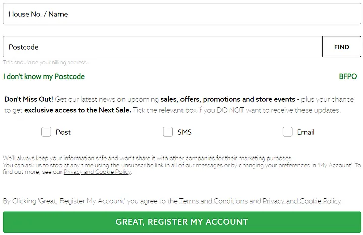 - 숨겨진 정보는 교활한 T&C , 읽을 수 없을 정도로 작은 글씨로 숨겨진 정보 및 체크박스, 대비가 낮은 텍스트에 이르기까지 다양합니다.