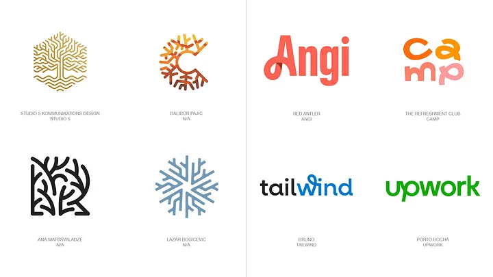 2022 로고라운지 트렌드 리포트에서. 트렌드를 쫓고 싶다면 다음 디자인에서 "루터"(왼쪽) 또는 "루퍼"(오른쪽)를 시도해보세요.
